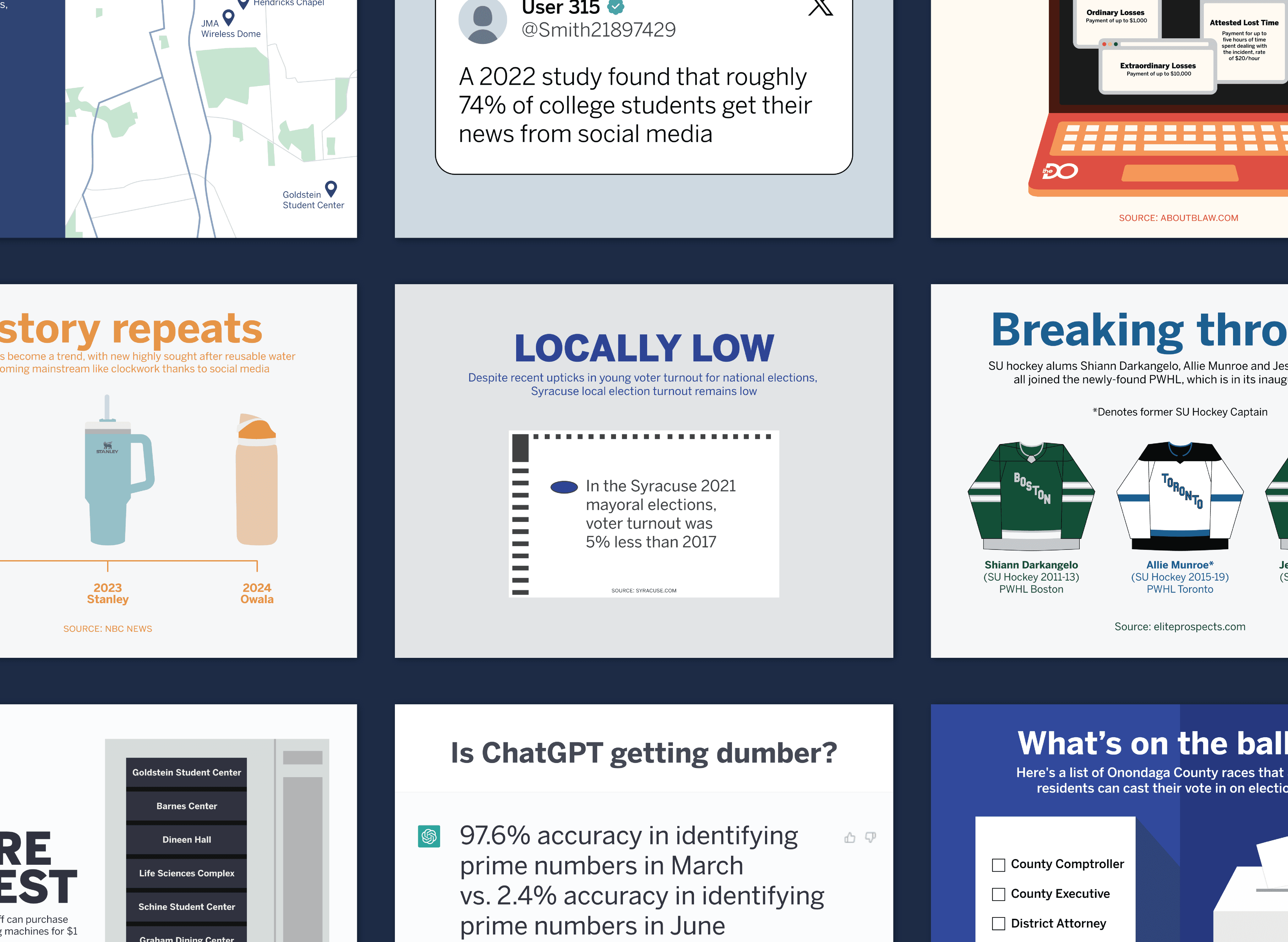 Served as Digital Design Director from Fall 2023 to Spring 2024 at Syracuse's independent campus newspaper.