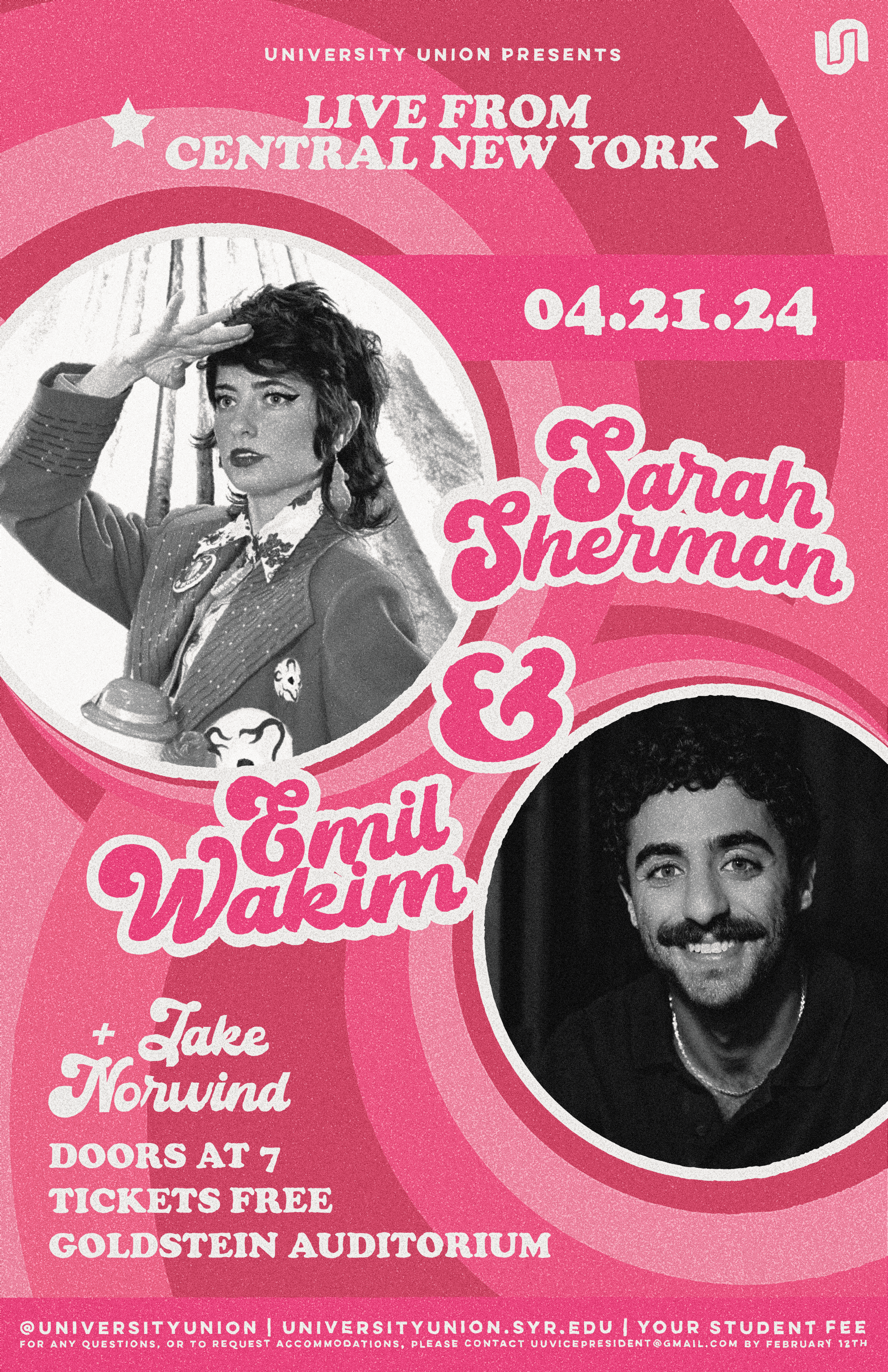 Design made for Sarah Sherman, Emil Wakim, & Jake Norwind's comedy show at Syracuse University.